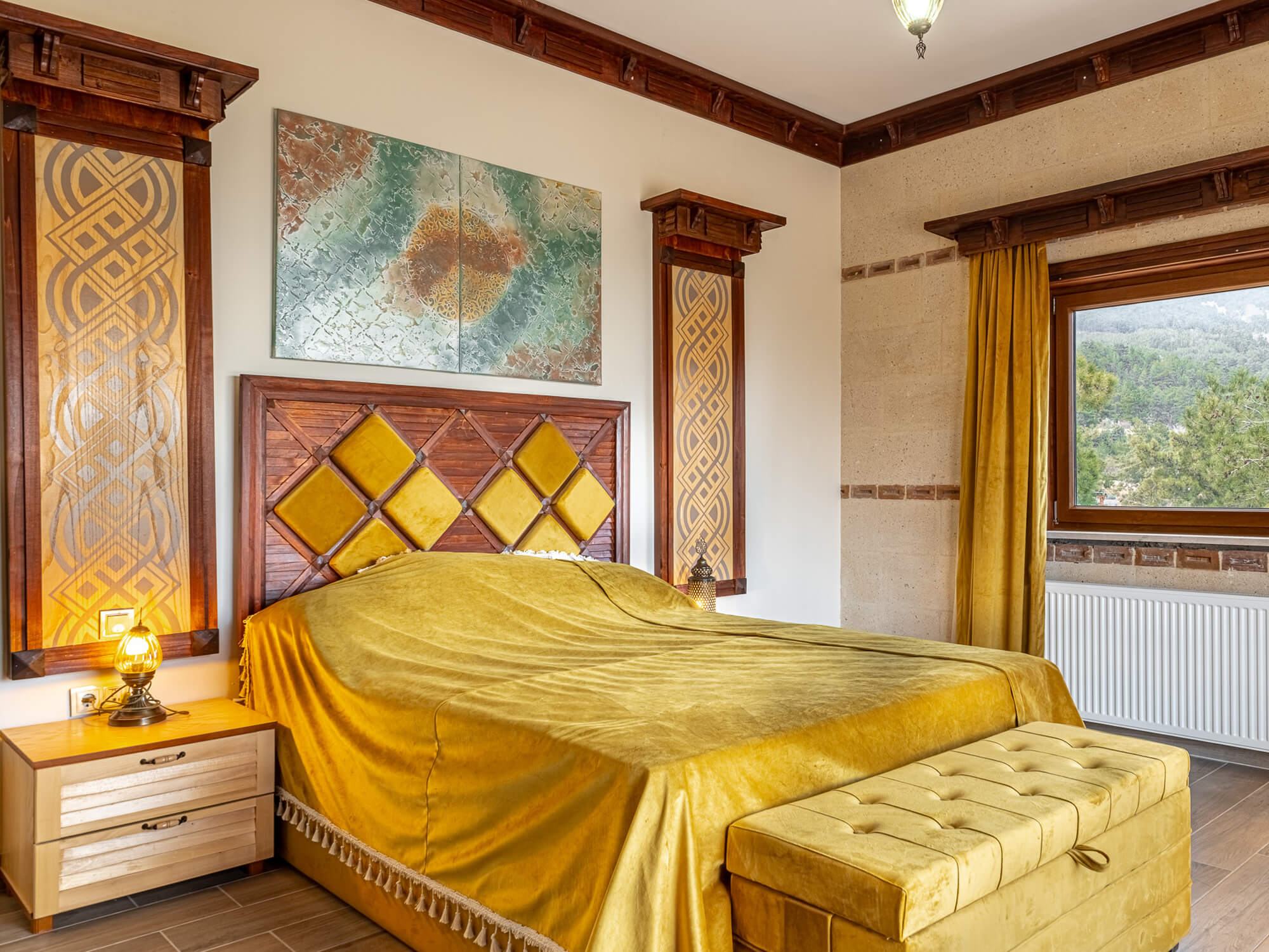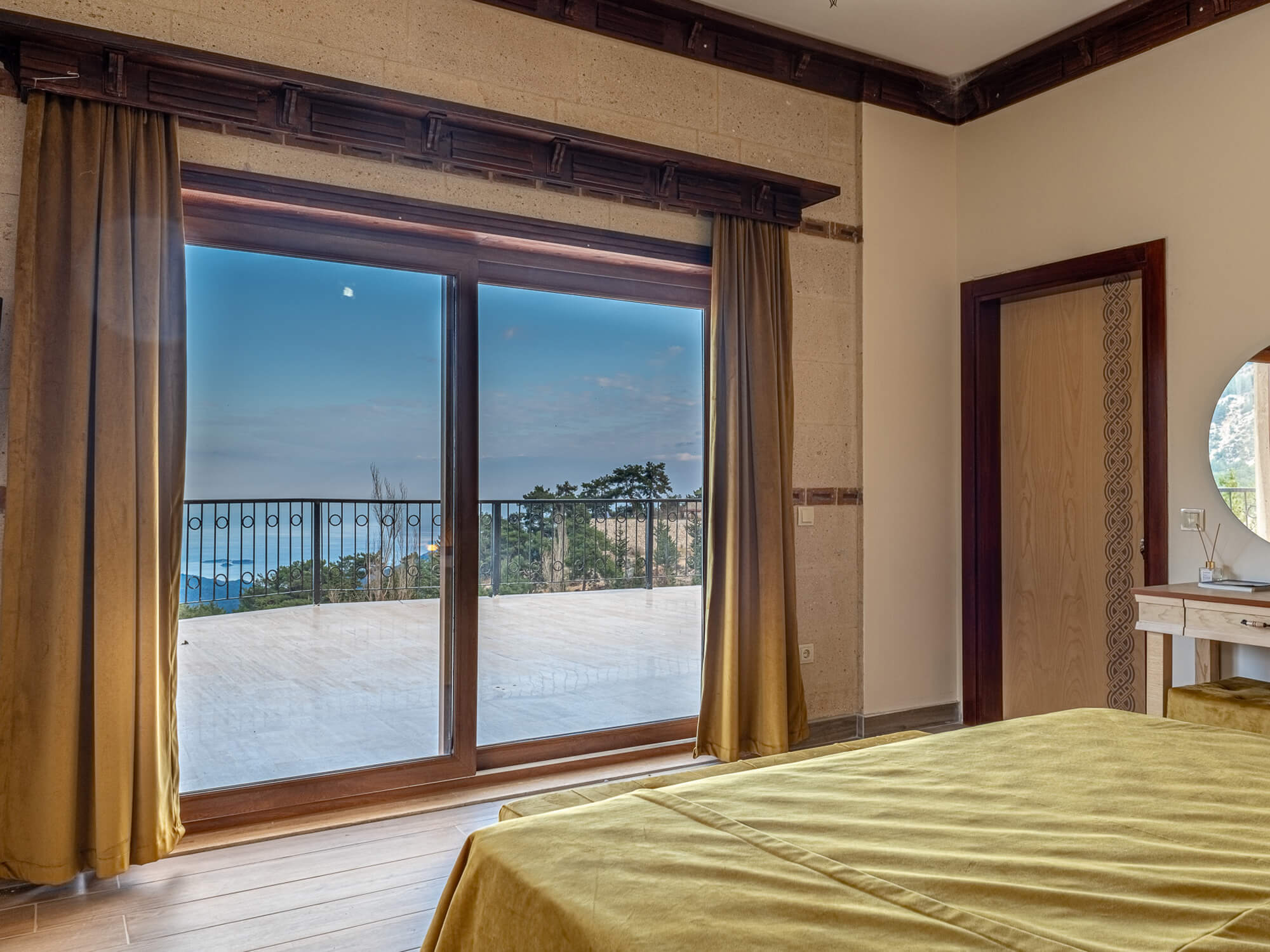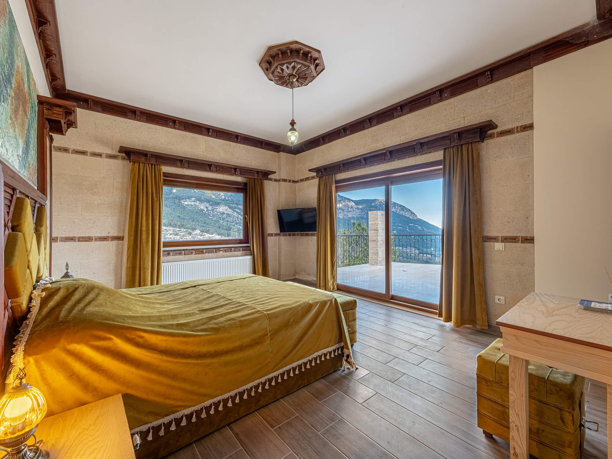 Büyük geniş teraslı dağ ve deniz manzaralı odamız.